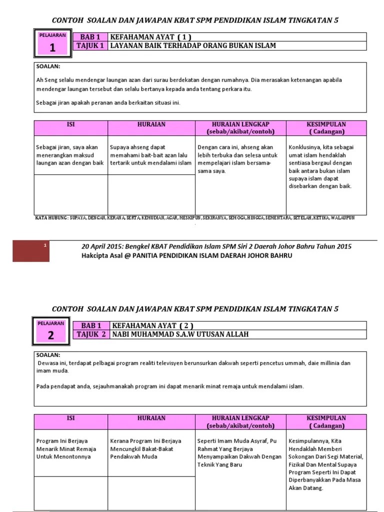 Contoh jawapan kbat pendidikan islam tingkatan 3.
